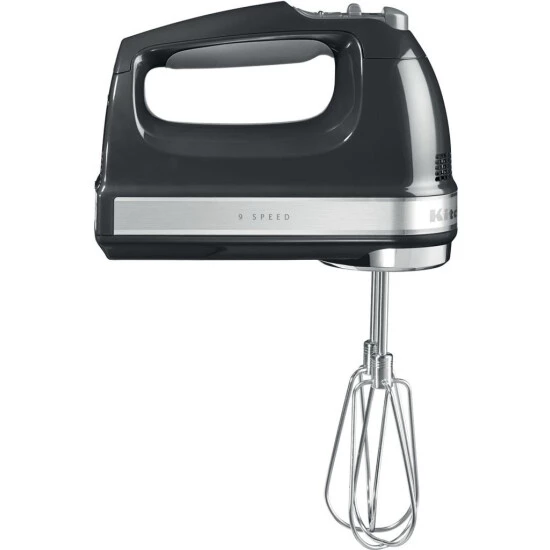 Mit dem KitchenAid Handrührer mit 9 Geschwindigkeitsstufen wird jede Mahlzeit im Handumdrehen ein Meisterwerk. Als kleiner Bruder der klassischen KitchenAid-Küchenmaschine überzeugt er mit 85 Watt Leistung und dem Zubehör wie die zwei Turbo Rührbesen aus Edelstahl, einen Schneebesen und zwei Knethaken, die Sie bei Nichtgebrauch im mitgelieferten Aufbewahrungsbeutel aufbewahren können.