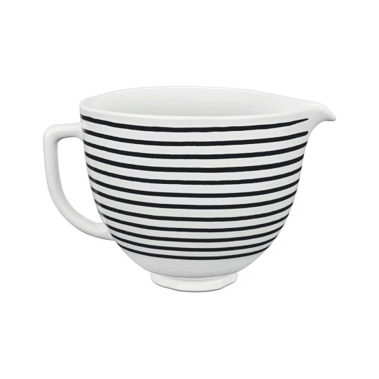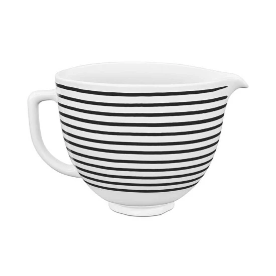 Keramická mísa, kterou lze bez obav používat v mikrovlnné troubě, troubě, mrazničce i myčce na nádobí. Mísa v bílém barevném provedení s černými pruhy s hladkým povrchem je vyrobena z titanové keramiky s 5letou zárukou proti oprýskání, mísa má mimořádnou odolnost proti oprýskání, popraskání, oděru i poskvrnění. Díky výjimečné kvalitě a materiálu je o 30 % lehčí oproti předcházejícím modelům keramické mísy s hubičkou a pohodlnou rukojetí.