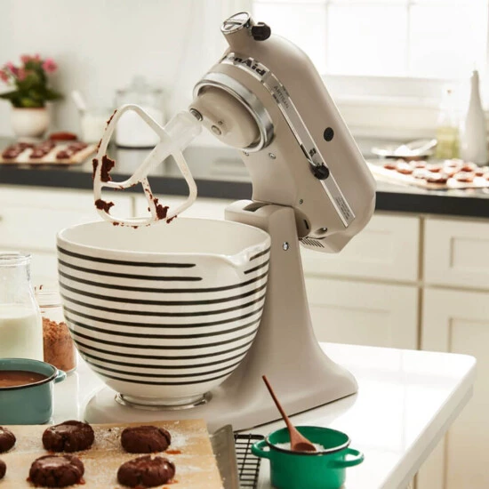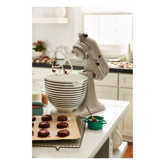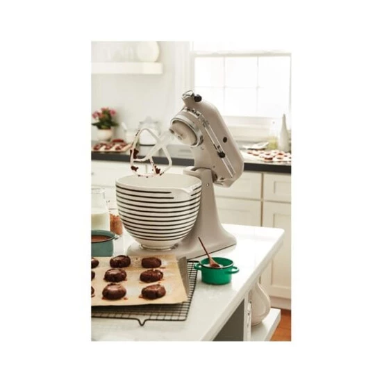 Die Keramikschüssel von KitchenAid ist ein weiteres Zubehör für die 4,3 l und 4,8 l Küchenmaschinen mit kippbarem Motorkopf. Dank ihres besonderen Bodens kann die Keramikschüssel einfach mit der Küchenmaschine verankert werden. Mit einem Fassungsvermögen von 4,7 l ist viel Platz für verschiedene Speisen z.B. passen bis zu 1 kg Mehl und 12 Eier hinein.