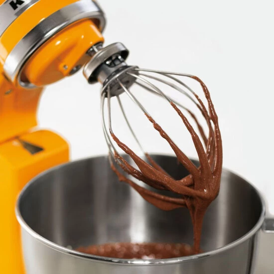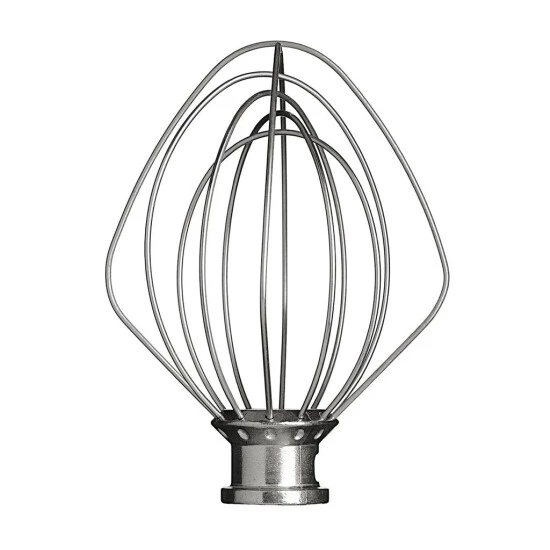 Šlehací metla pro kuchyňský robot se sklopnou hlavou 5KSM150PS-156 – robot Artisan s mísou o objemu 4,8 l. Ideální ke šlehání vajec, šlehačky, majonézy a hladkých omáček. Hlava metly je vyrobena z hliníku, dráty pak z kvalitní nerezové oceli. Nelze mýt v myčce nádobí.