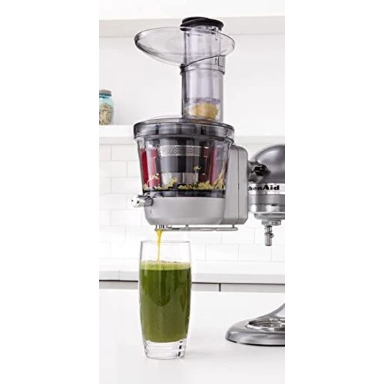 KitchenAid Entsafter Vorsatz für die KItchenAid Küchenmaschinen Modelle Artisan, Heavy Duty, Classic und Mini Zweistufige, schonende Entsaftung dank Vorschnitt, mit Edelstahlklinge und Pressschnecke.
