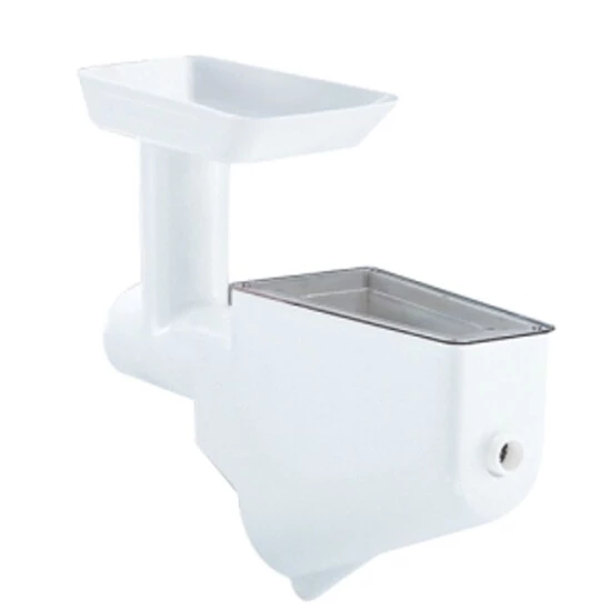 Zum Hacken und Zerkleinern von Fleisch, Fisch, Gemüse, trockenem Brot, festen Früchten und Käse. Komplett mit Messer mit vier selbstschärfenden Edelstahlklingen, grober und feiner Edelstahlmahlscheibe sowie Stopfer/Schlüssel. Der Pürieraufsatz ist besonders zum Pürieren von Obst und Früchten geeignet.