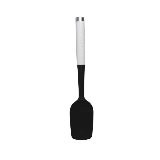 Stěrka se lžící KitchenAid je vybavena flexibilní hlavou se zakřivenými stranami, takže dokáže stejně účinně míchat, nabírat i stírat.